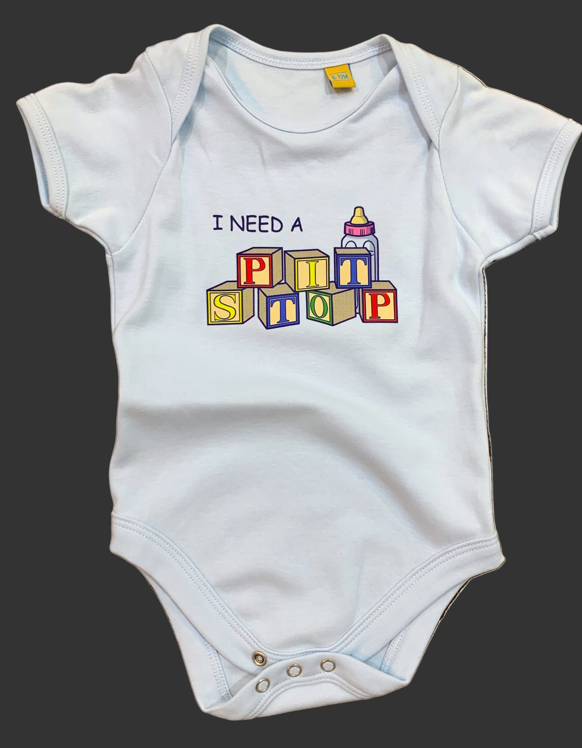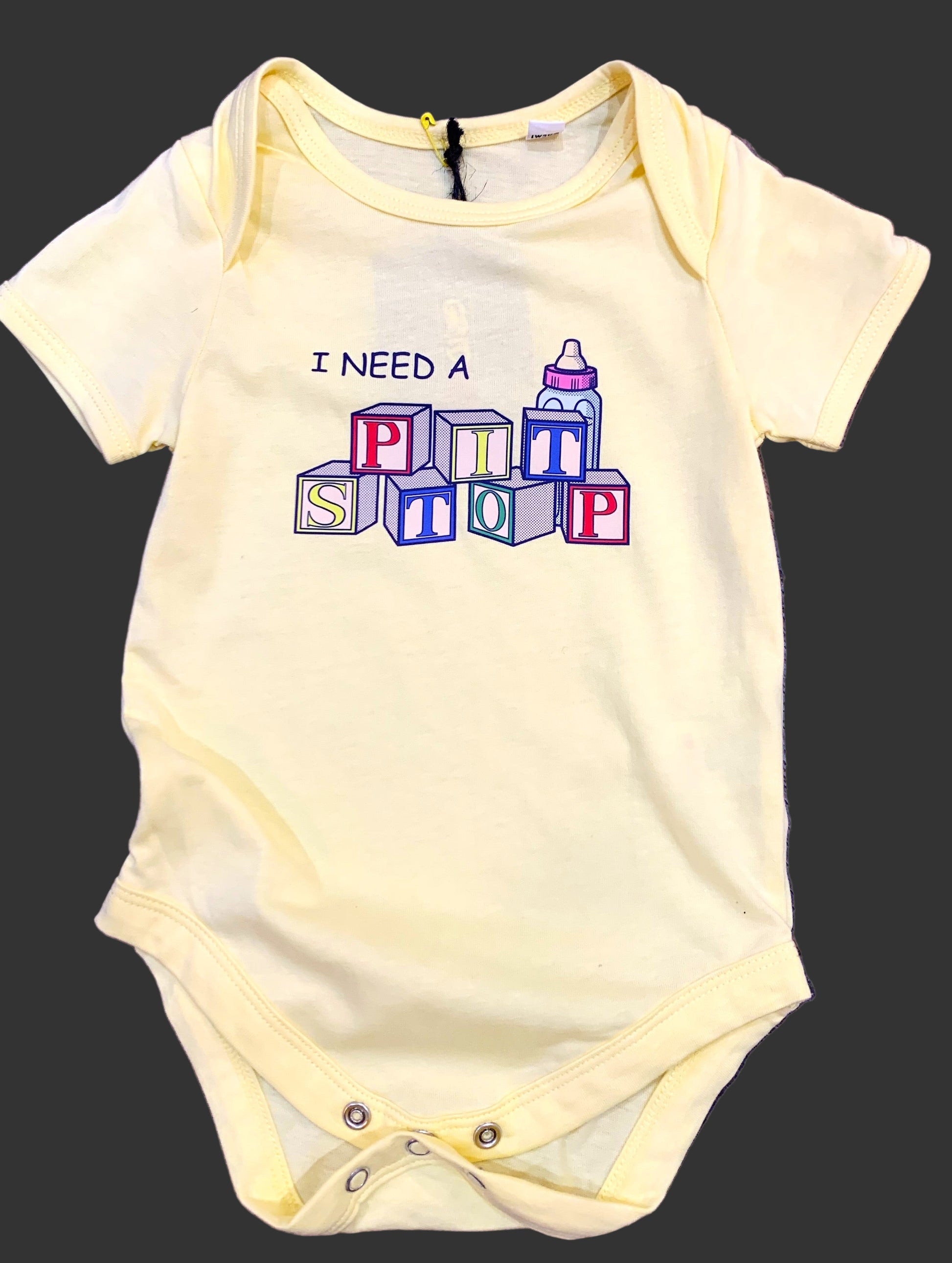 Gear up with Gridkidz, the coolest children's clothing brand by Gridgear. Made with 100% cotton, this bodysuit features a cute "I need a pit stop" logo. Perfect for your little one's playful adventures.